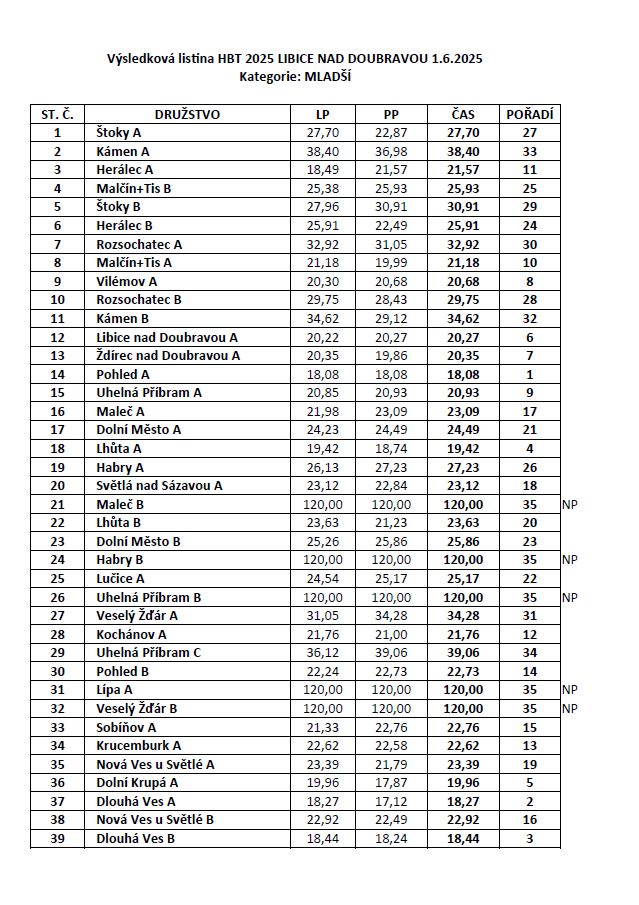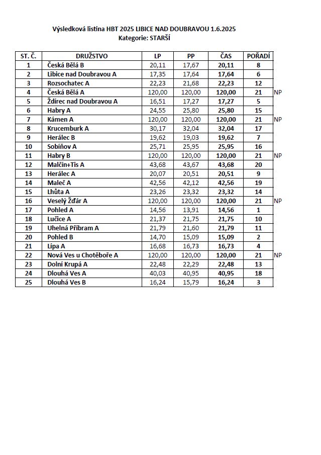 VÝSLEDKOVÁ LISTINA – HBT 2025 LIBICE N/D 1.6.2025